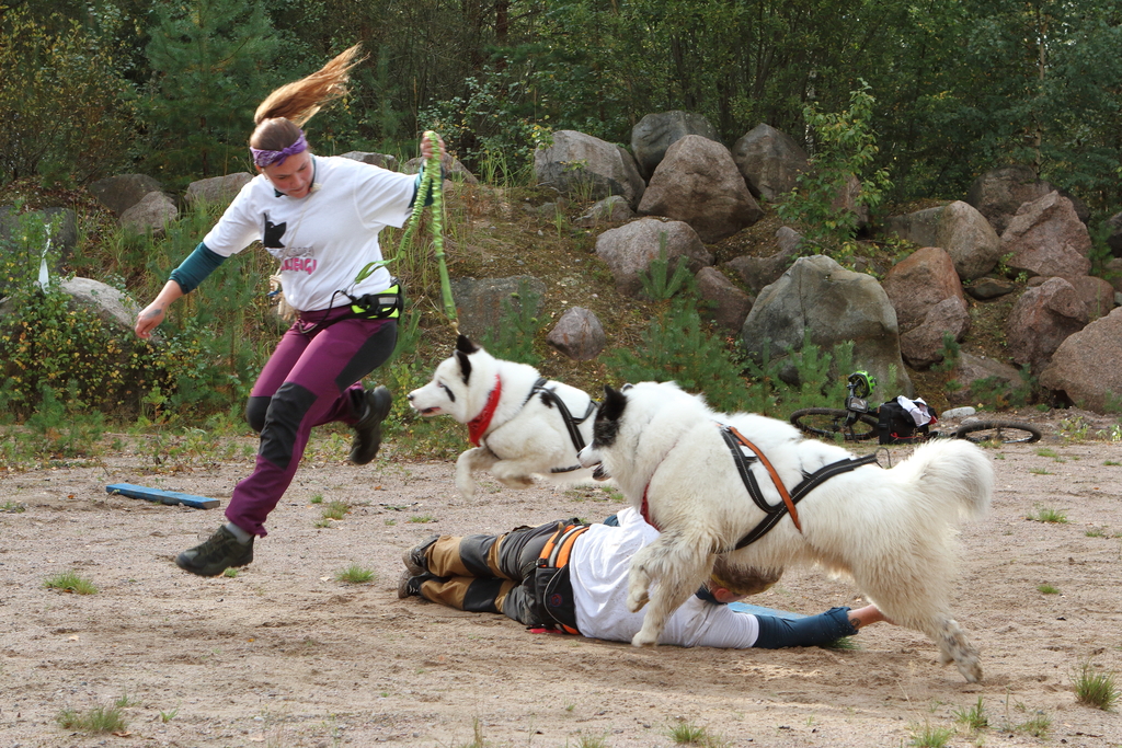 Koiran ei tarvitse olla mikään tottelevaisuusvalio, riittää kunhan se osaa kulkea hihnassa samaan suuntaan kuin ohjaajansa. Ketteryydestä ja rohkeudesta toki on radan suorittamisen kannalta varmasti apua.